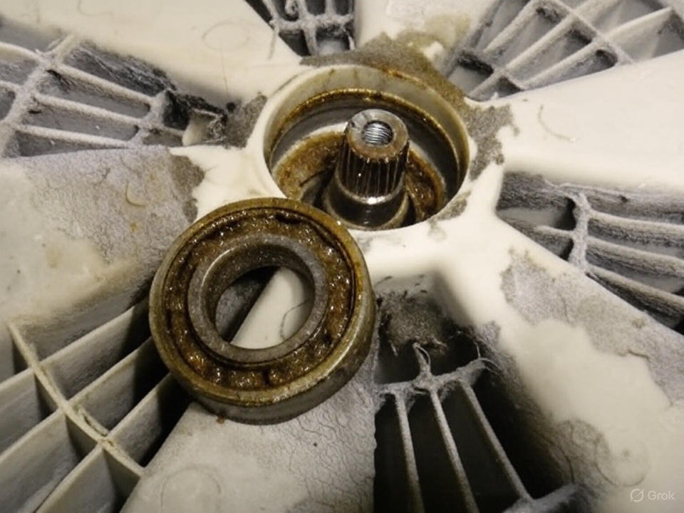 Если стиральной машине более пяти–семи лет и она используется почти ежедневно, то наиболее частая причина грохота при отжиме — износ подшипников.